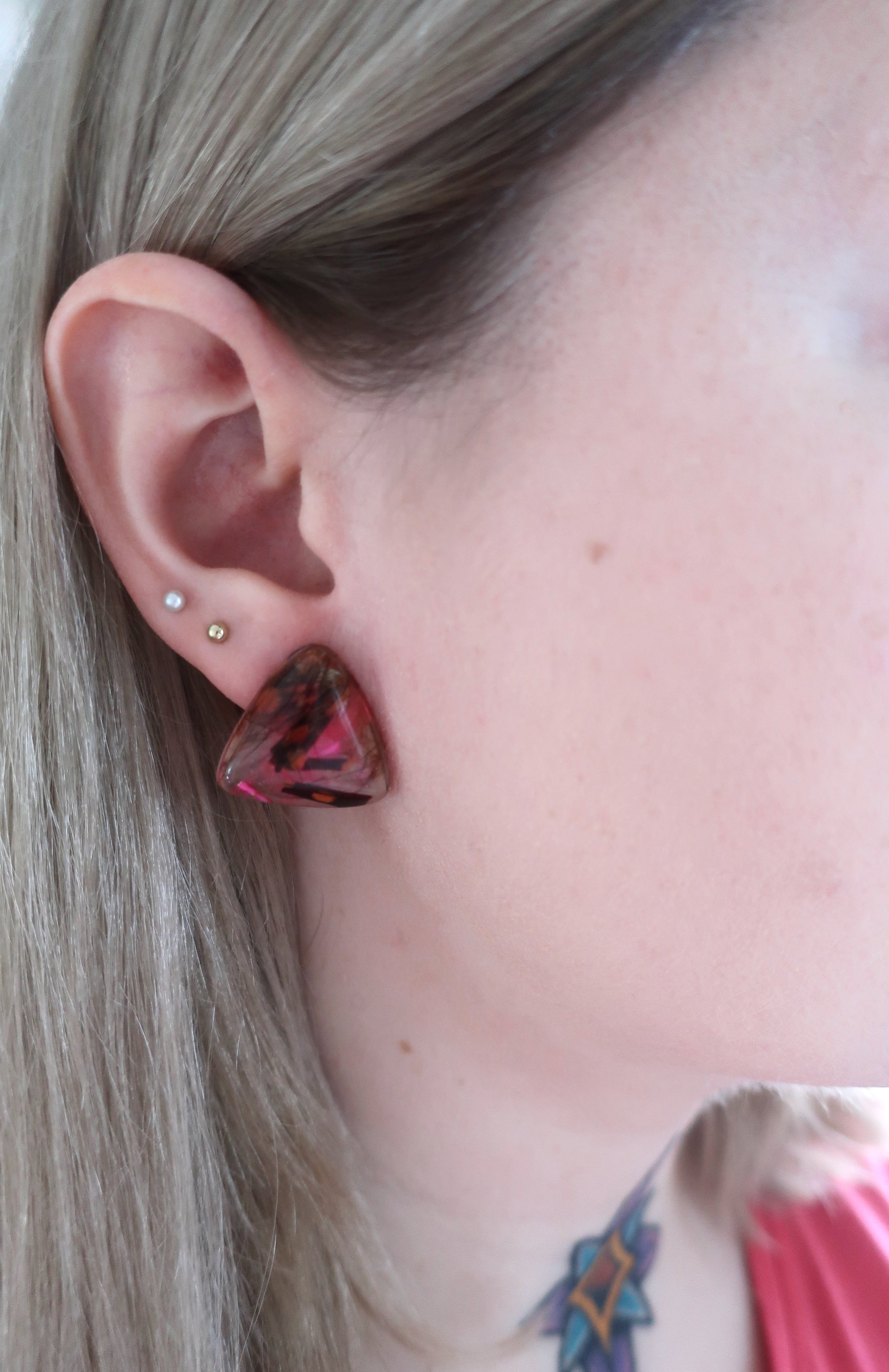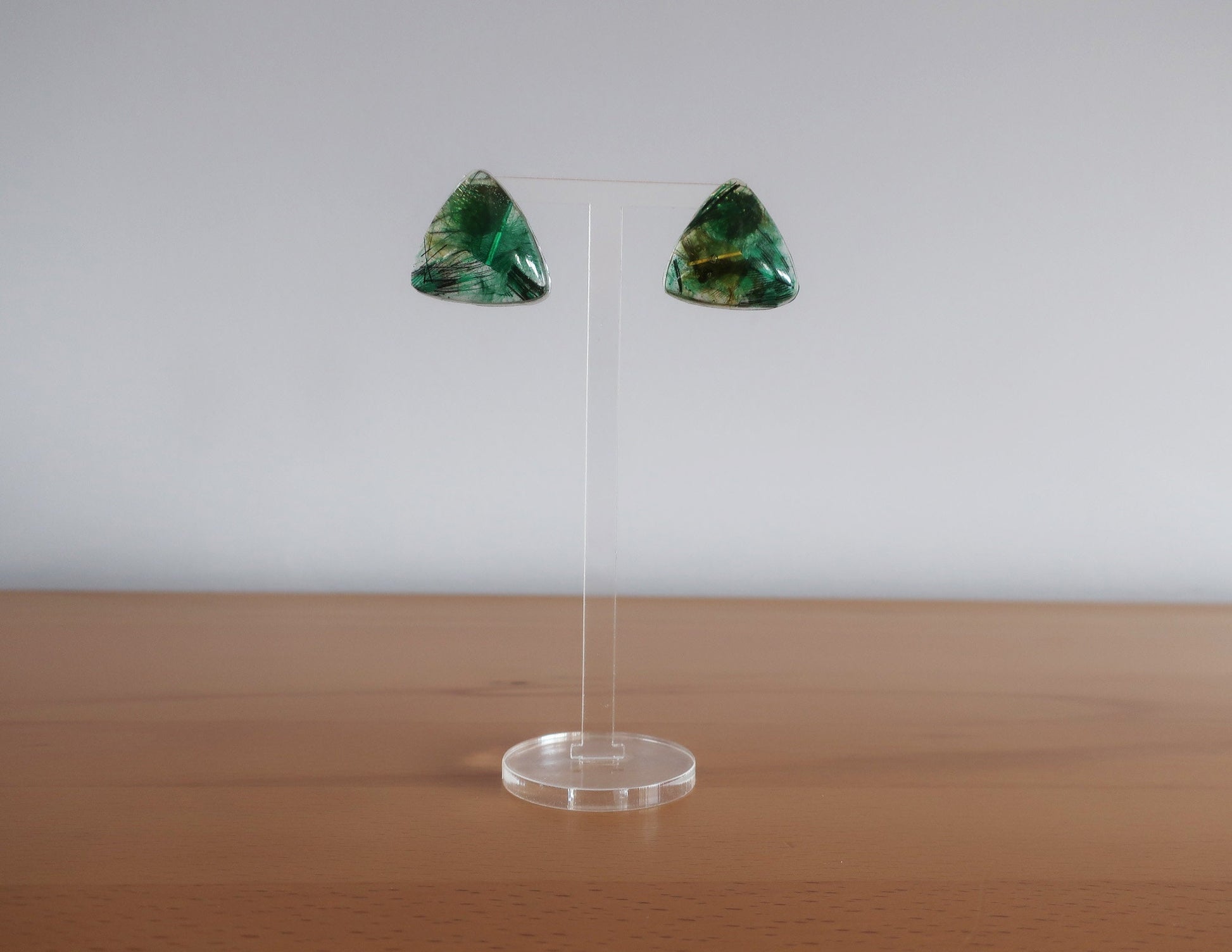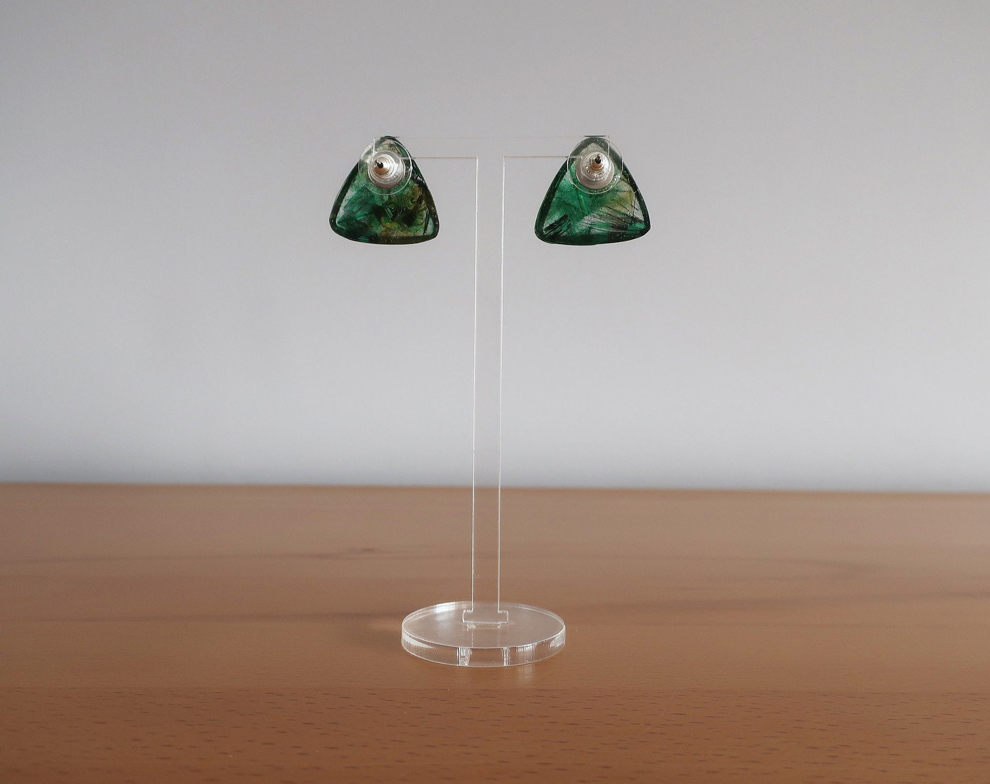 Ich habe diese Ohrringe aus Epoxidharz und Bastelfedern hergestellt. Es gibt vier Varianten: Grün, Pink, Gelb und Blau. Die Stecker sind aus Edelstahl.