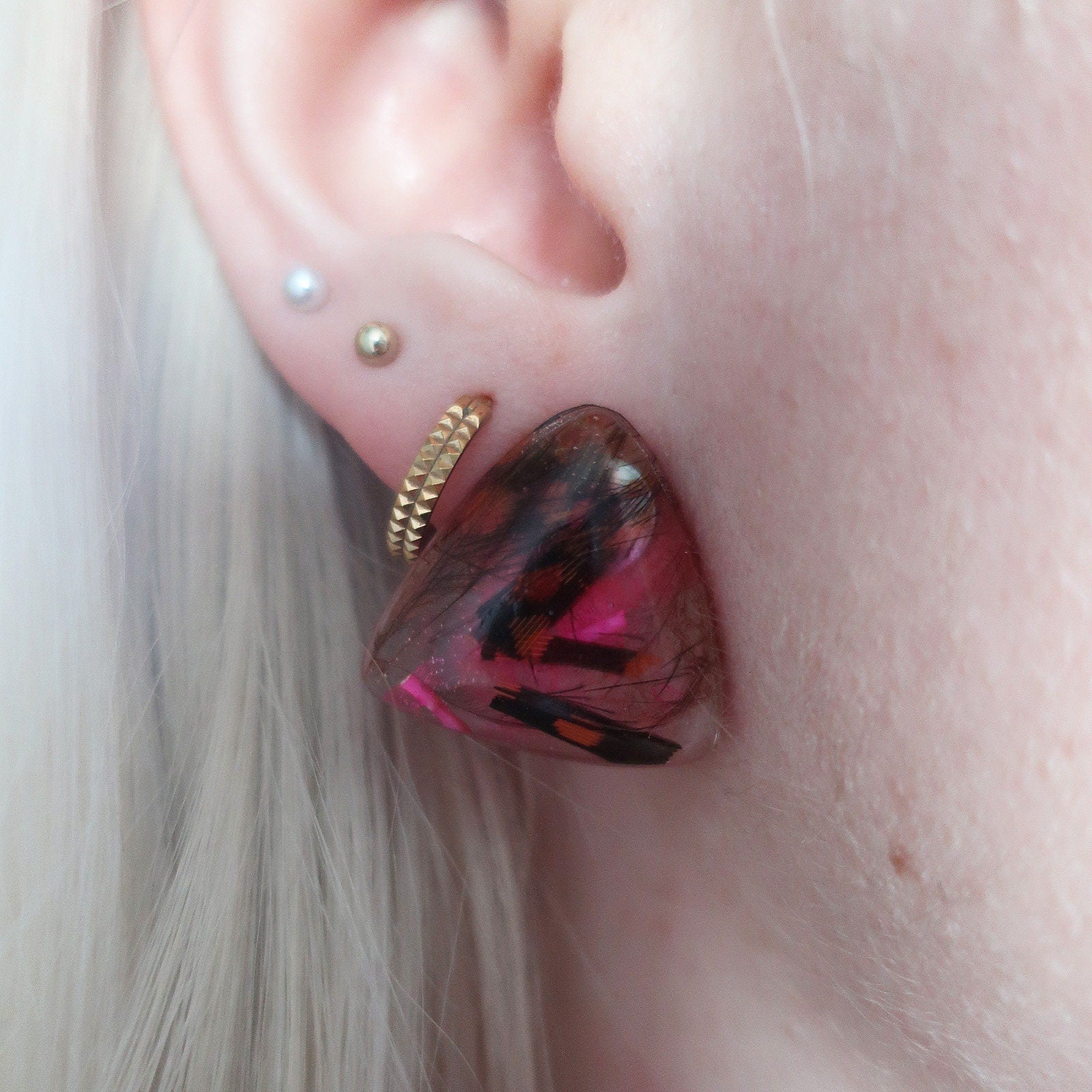 Materialien: Epoxidharz, Kunstfedern, Edelstahlstecker