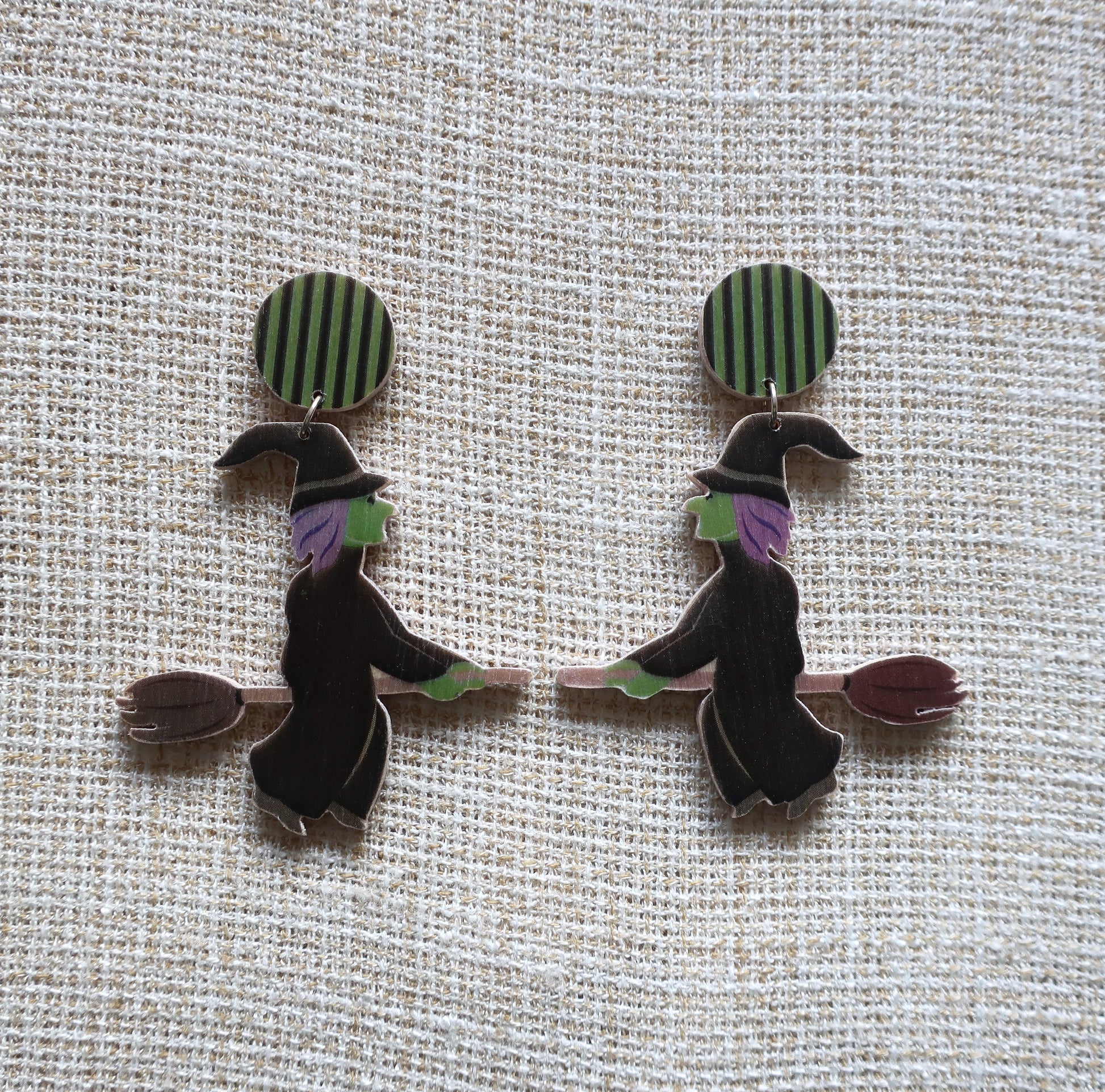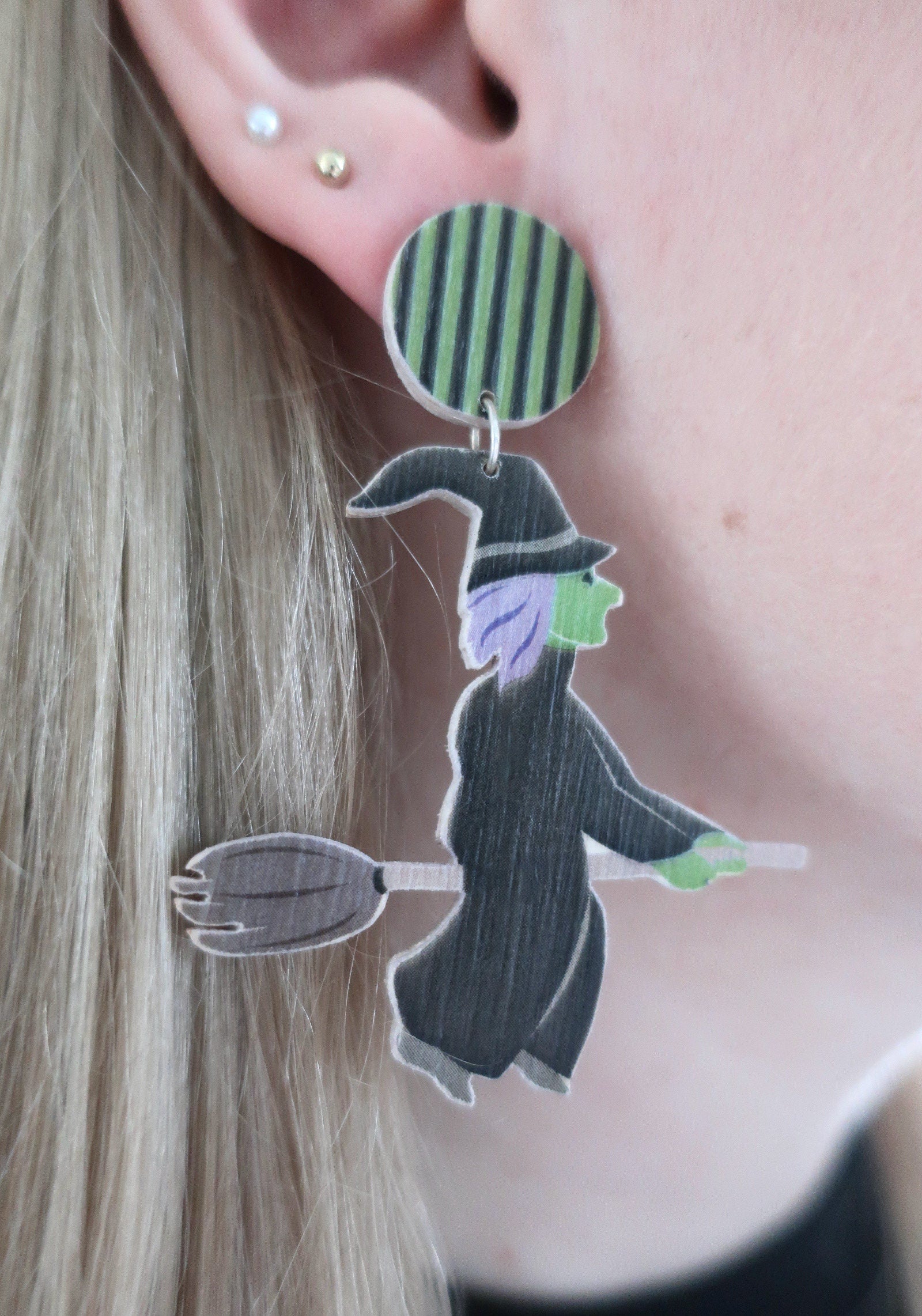 Für diese Ohrringe habe ich eine Zeichnung am Computer erstellt, die ich anschließend manuell auf Birkenholz übertragen und dann mit einer Dekupiersäge ausgesägt habe. Um die Haltbarkeit zu verbessern wurde eine Schicht matter Lack aufgetragen.